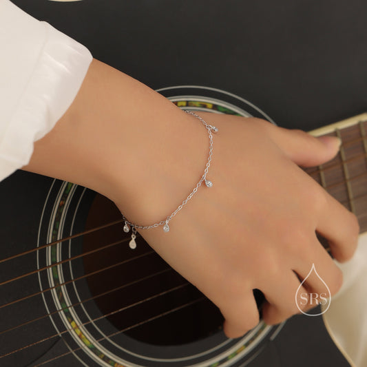 CZ Droplet Bracelet in Sterling Silver, Silver or Gold, Silver Clear CZ Pear Cut Bezel Bracelet, CZ Cluster Bracelet, Vintage Inspired Bezel