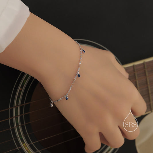 Sapphire Blue CZ Droplet Bracelet in Sterling Silver, Silver or Gold, Silver Blue CZ Pear Cut Bezel Bracelet, CZ Cluster Bracelet