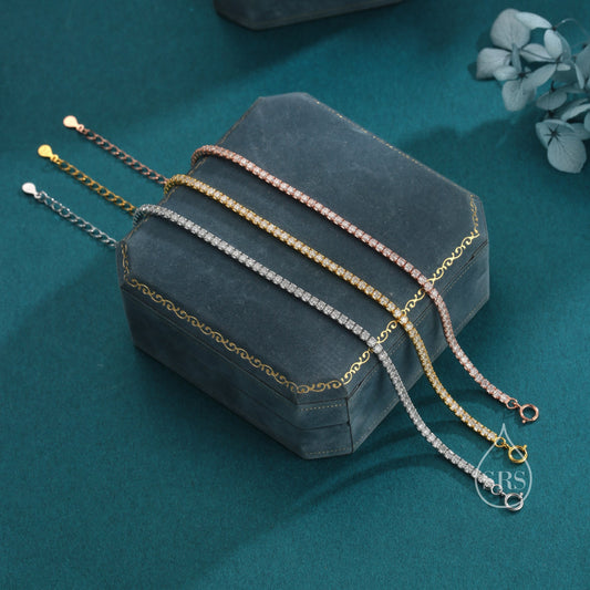 2mm CZ Tennis Bracelet in Sterling Silver, Silver or Gold or Rose Gold, Silver Clear CZ Bracelet, CZ Cluster Bracelet, Minimalist Bracelet