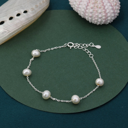 Sterling Silver Delicate Freshwater Pearl Beaded Bracelet, Genuine Freshwater Keshi Pearls, Natural Pearl Bracelet