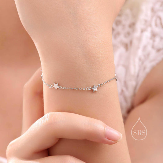 Five Star Motif Bracelet in Sterling Silver, North Star Bracelet, Sunburst Star Bracelet, Star Motif