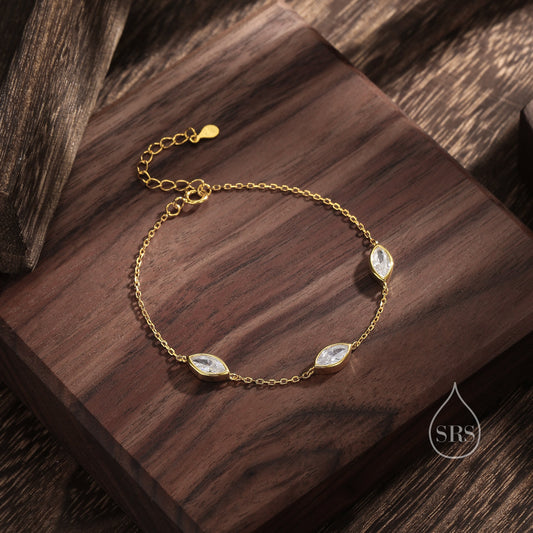 Clear CZ Marquise Bracelet in Sterling Silver, Silver or Gold, Silver Clear CZ Marquise Cut Bracelet, CZ Cluster Bracelet