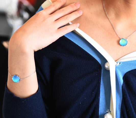 Sale! Aurora Glass Crystal Bracelet in Sterling Silver, Northern Lights Bracelet with Blue Flash Simulated Moonstone