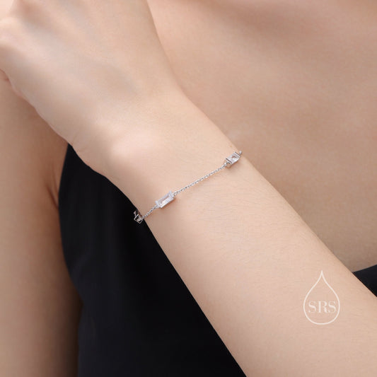 Sale! Baguette CZ Satellite Bracelet in Sterling Silver, Silver or Gold, Baguette CZ Bracelet, Chain Bracelet, Delicate CZ Bracelet