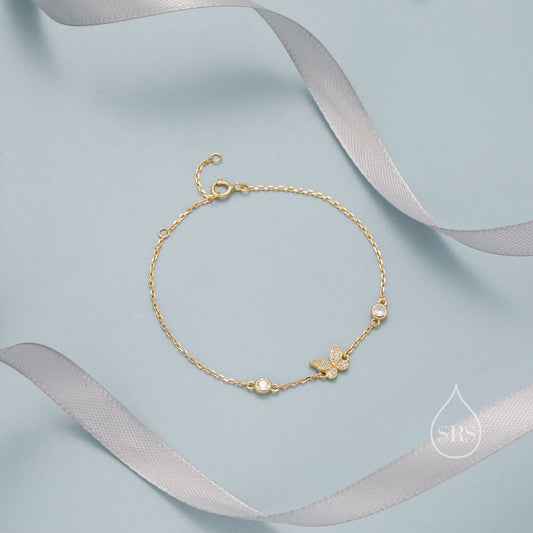 Butterfly Motif Bracelet in Sterling Silver, Silver, Gold or Rose Gold, Butterfly Bracelet, Butterfly Jewellery, CZ Butterfly Bracelet