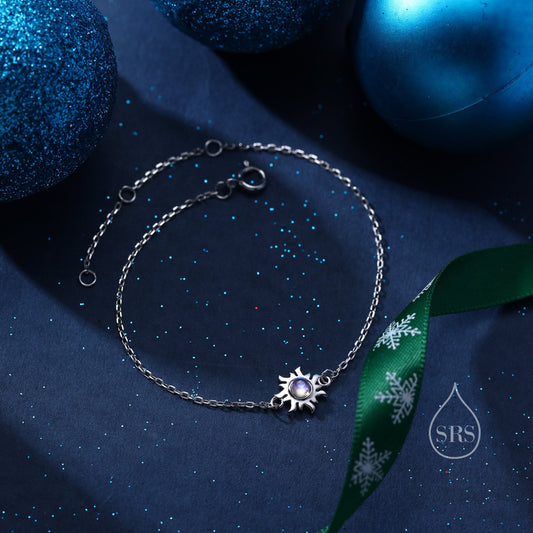 Extra Tiny Moonstone Sun Bracelet in Sterling Silver, Silver or Gold, Simulated Moonstone, Small Sun Bracelet, Silver Celestial Bracelet