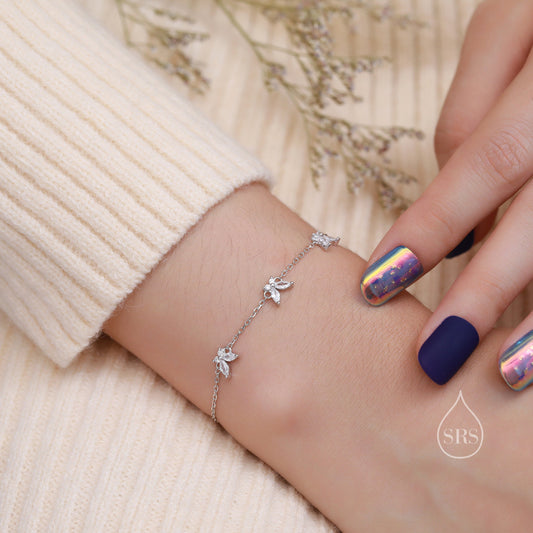 CZ and Crystal Butterfly Floating Bracelet in Sterling Silver, Silver or Gold or Rose gold, Satellite Bracelet, Solid Silver Bracelet