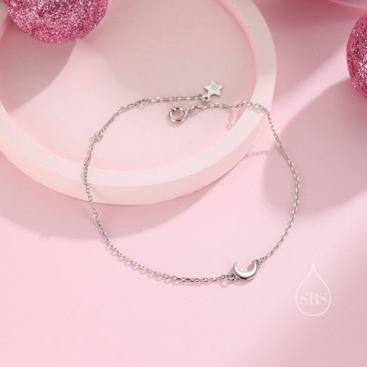 Extra Tiny Crescent Moon Bracelet in Sterling Silver, Single Silver Moon Bracelet, Moon Jewellery, Moon and Star