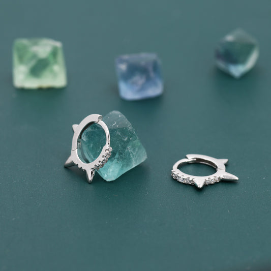 Triple Spike Huggie Hoop Earrings, Sterling Silver with CZ Crystal Pavé