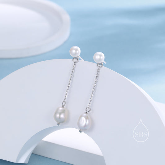 Genuine Fresh Water Pearl Cascade U Shape Threader Earrings in Sterling Silver, Silver or Gold Finish Ear Threaders, Long Threaders,
