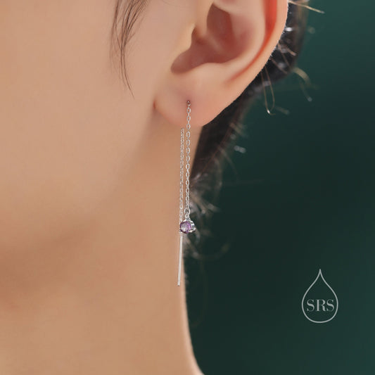4mm Amethyst Purple CZ Threader Earrings in Sterling Silver, Silver or Gold or Rose Gold, Dot Crystal Ear Threaders, Prong Set CZ Earring