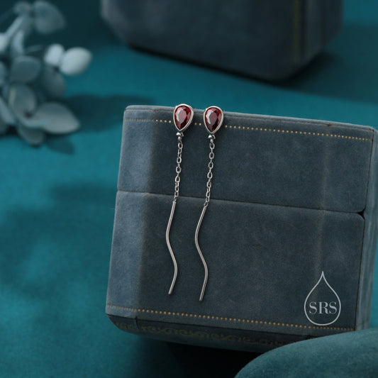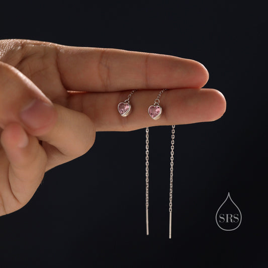 Tiny Pink CZ Heart Threader Earrings in Sterling Silver, 9cm, Silver or Gold, Dainty Heart Ear Threaders, Delicate Heart Threaders