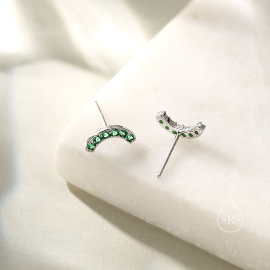 Emerald Green CZ Curved Bar Tiny Stud Earrings in Sterling Silver, Silver or Gold, Tiny CZ Bar Stud, Geometric Bar Earrings