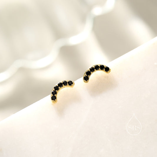 Black CZ Curved Bar Tiny Stud Earrings in Sterling Silver, Silver or Gold, Tiny CZ Bar Stud, Geometric Bar Earrings