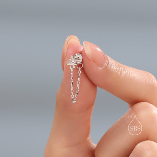 Tiny Triangle CZ Chain Earrings in Sterling Silver, Silver or Gold, Triangle CZ Ear Jacket, CZ Jacket Earrings