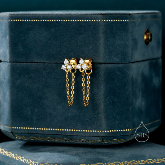 Hydrangea CZ Chain Earrings in Sterling Silver, Silver or Gold, Four CZ Ear Jacket, CZ Jacket Earrings, Four Crystal Earrings,