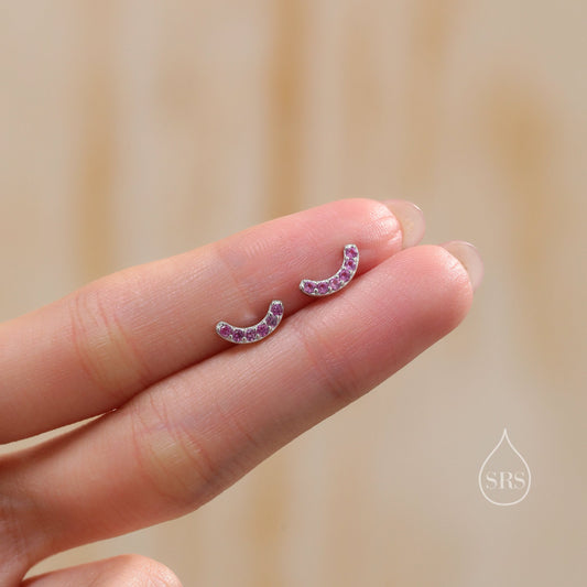 Pink CZ Curved Bar Tiny Stud Earrings in Sterling Silver, Silver or Gold, Tiny CZ Bar Stud, Geometric Bar Earrings
