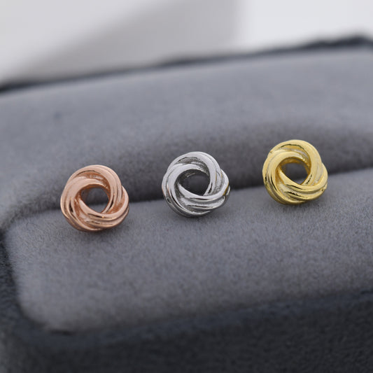 Sterling Silver Love Knot Stud Earrings, Also in Gold Finish or Rose Gold Finish, Dainty Knot Earrings, Bridesmaid's Jewellery