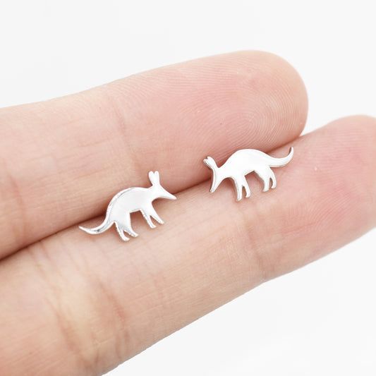 Aardvark Stud Earrings in Sterling Silver, Silver or Gold, Nature Inspired Animal Design