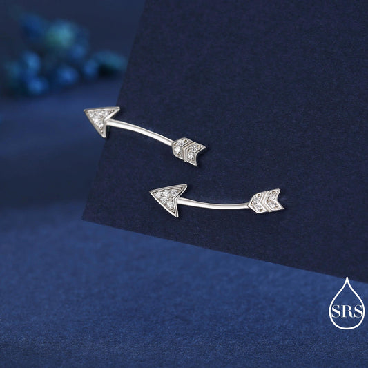 Arrow Crawler Earrings in Sterling Silver with CZ Crystals, Silver or Gold or Rose Gold, CZ Arrow Ear Crawlers, Ear Climbers