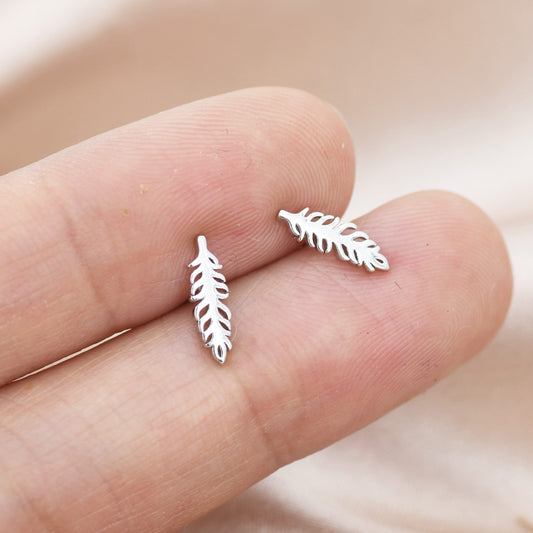 Tiny Feather Stud Earrings in Sterling Silver, Silver, Gold or Rose Gold, Nature Inspired Animal Earrings