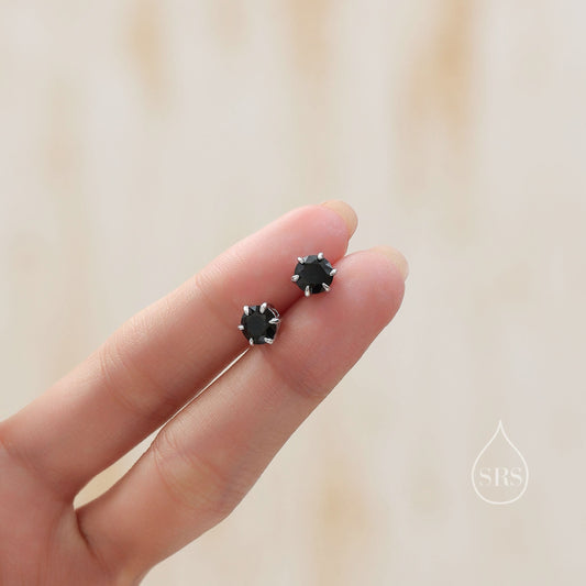 Prong Set Black CZ Stud Earrings in Sterling Silver, Silver or Gold, 6 Prong 6mm CZ Earrings