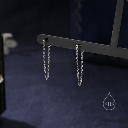 Minimalist Chain Ear Jacket in Sterling Silver, Silver or Gold or Rose Gold, Front and Back Earrings, Two Part Earrings, Chain Earrings