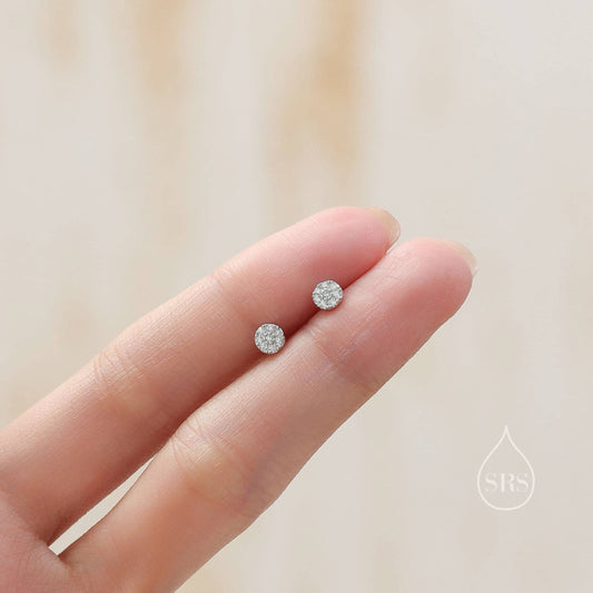 Extra Tiny Round Disk Stud Earrings in Sterling Silver, CZ Coin Earrings, Tiny Circle Stud, CZ Pave Coin Earrings, Silver or Gold