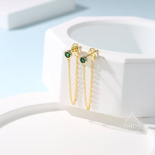 Emerald Green CZ Chain Ear Jacket in Sterling Silver, Silver or Gold, Front and Back Earrings, Two Part Earrings, Linking Chain Earrings