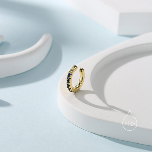 Sapphire Blue CZ Ear Cuff in Sterling Silver, Silver or Gold, Minimal Piercing Free Earrings, Minimalist Ear Cuff, Green CZ Ear Cuff