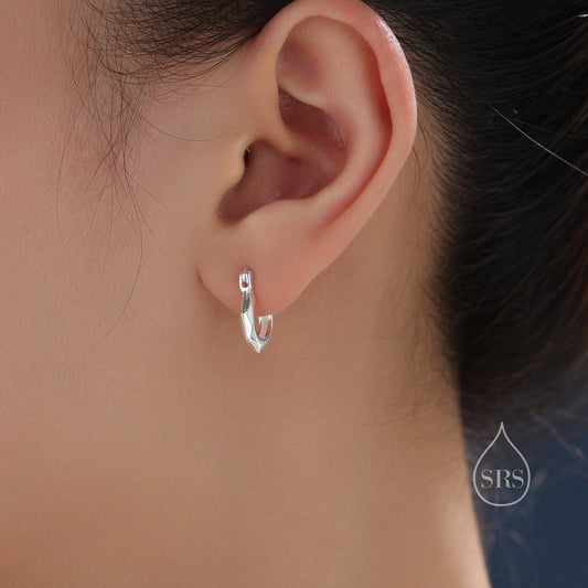 Geometric Faceted Huggie Hoops in Sterling Silver, Silver or Gold or Rose Gold, Chunky Look but Light Weight