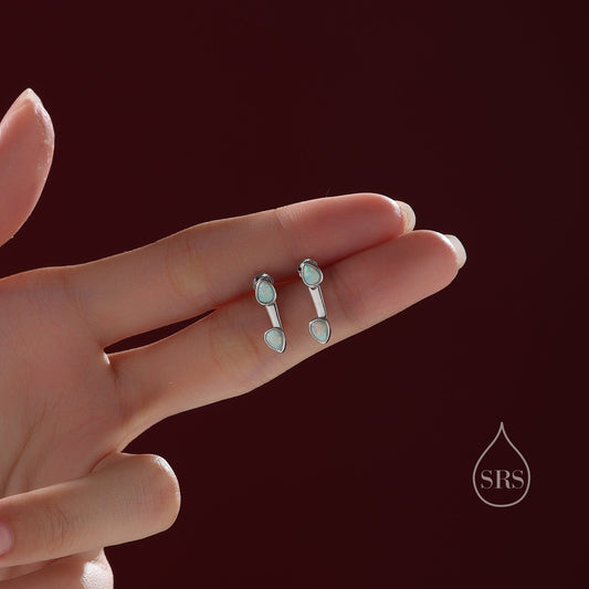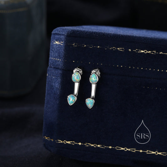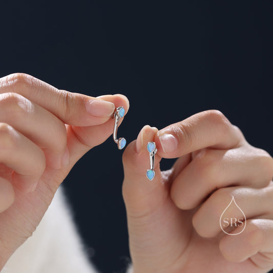 Blue Opal Droplet Ear Jacket in Sterling Silver, Silver or Gold, White Opal Pear Bezel Earrings, Front and Back Earrings