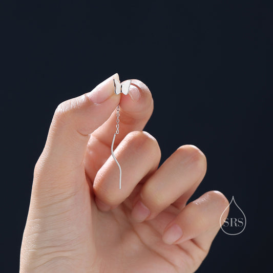 Sterling Silver Butterfly Ear Threaders, Silver or Gold or Rose Gold, Butterfly Swirl Threader Earrings, Dainty Butterfly Dangle Earrings