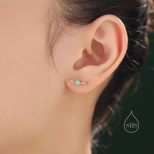 Single Piercing Moonstone or Opal Skinny Earlobe Cuff Earring in Sterling Silver, Lobe Cuff, Silver or Gold or Rose Gold