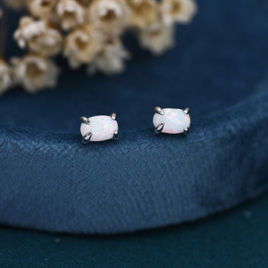 White Opal Oval Stud Earrings in Sterling Silver - Gold or Silver - Opal Oval Earrings - Opal Prong Set Earrings, White Opal