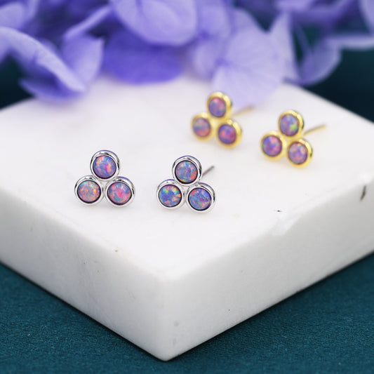 Purple Opal Dot Circle Stud Earrings in Sterling Silver - Silver or Gold - Fire Opal Trio Earrings, Three Opals