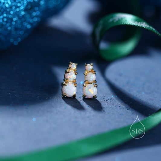 Tiny Opal Trio Stud Earrings in Sterling Silver, Silver or Gold, Three Star Earrings, Three Opal Earrings, Opal Stud, Small Opal Earrings