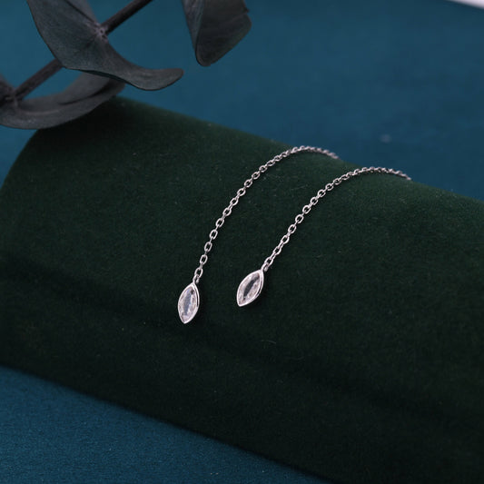 Tiny Marquise CZ Threader Earrings in Sterling Silver, Silver or Gold, Marquise Cut CZ Ear Threaders, Sparkly Threaders