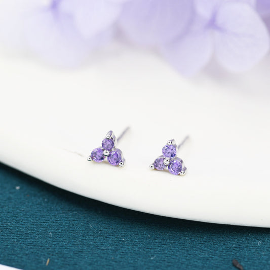 Extra Small Trinity CZ Stud Earrings in Sterling Silver - Three Dot - Gold or Silver - Amethyst pruple