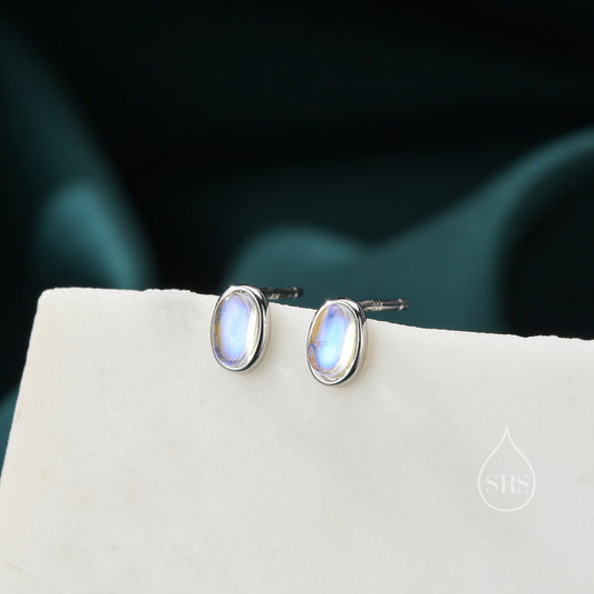 Sterling Silver Oval Moonstone Stud Earrings, Lab Moonstone Earrings, Minimalist Moonstone Earrings