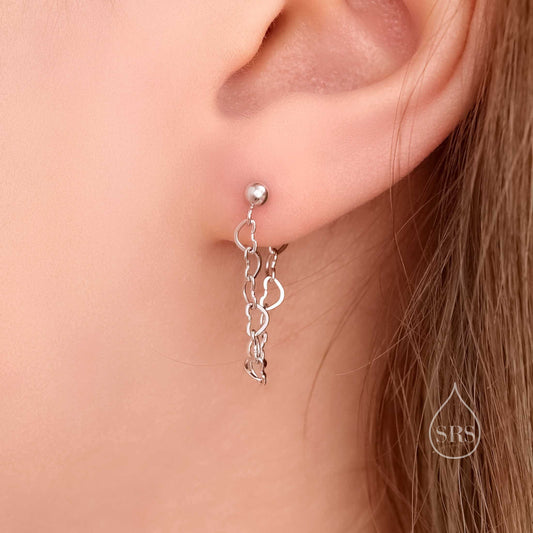 Heart Chain Stud Earrings in Sterling Silver, Silver or Gold, Tiny Ear Jacket, Dainty Jewellery
