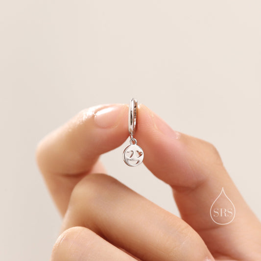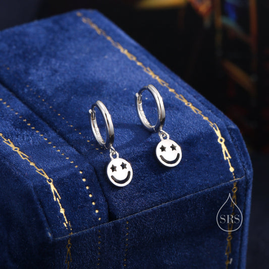 Starry Eyed Face Huggie Hoop Earrings in Sterling Silver, Silver or Gold or Rose Gold, Sterling Silver Starry Eyed Earrings
