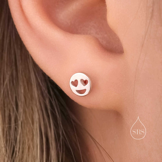 Heart Eyes Face Stud Earrings in Sterling Silver, Silver or Gold or Rose Gold, Sterling Silver Smile Earrings