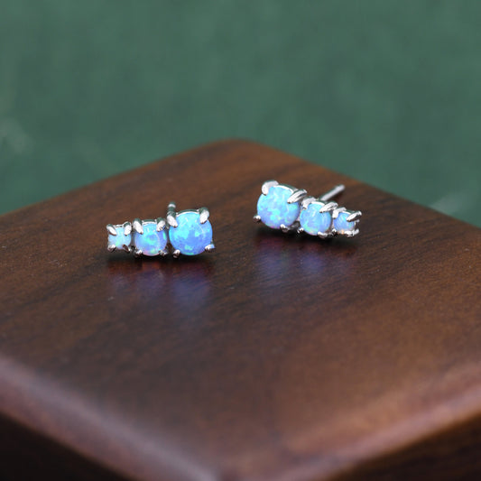 Blue Opal Trio Stud Earrings in Sterling Silver, Silver or Gold, Three Star Earrings, Three Opal Earrings, Opal Stud, Small Opal Earrings