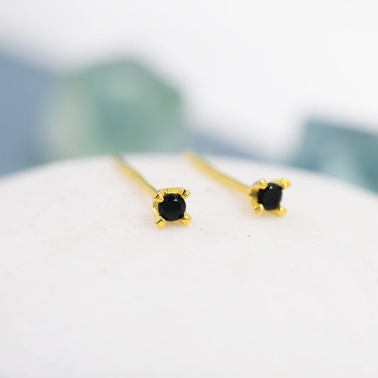 Extra Tiny 2mm Black CZ Stud Earrings in Sterling Silver, Barely Visible Stud Earrings, 2mm Black Earrings, Tiny Crystal Earrings