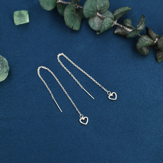 Tiny Open Heart Threader Earrings in Sterling Silver, 9cm, Silver, Gold or Rose Gold, Dainty Heart Ear Threaders, Single or Double Piercing