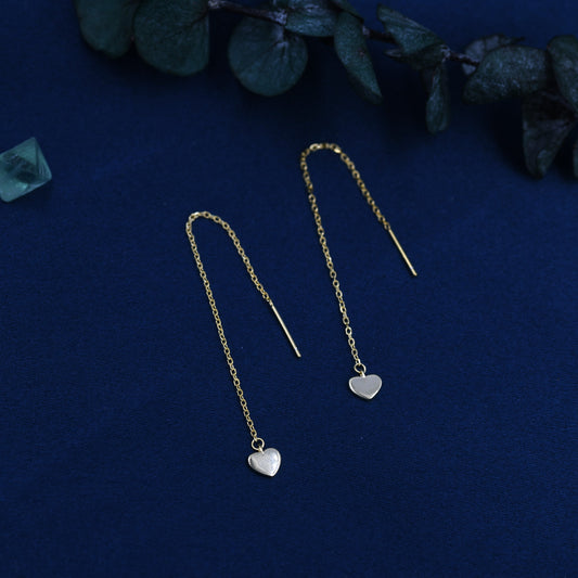 Tiny Heart Threader Earrings in Sterling Silver, 9cm, Silver, Gold or Rose Gold, Heart Ear Threaders, Single or Double Piercing