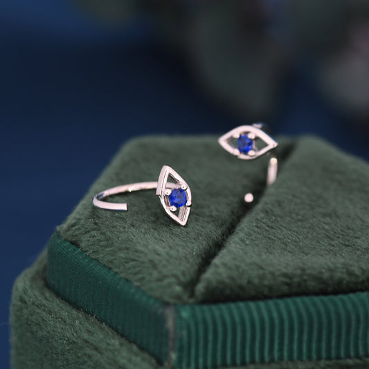 Evil Eye CZ Huggie Hoop Earrings in Sterling Silver, Silver or Gold, Open Threader, Threader Hoop, Open Hoops, C shape Earrings