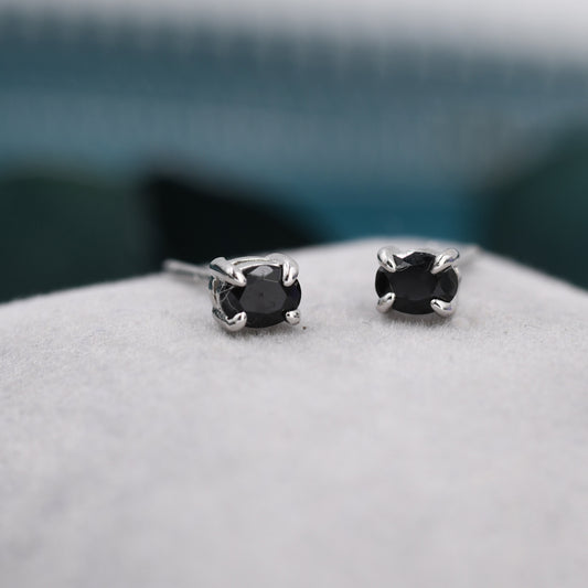 Very Tiny Black Oval CZ Stud Earrings in Sterling Silver, Silver or Gold, Oval Cut Crystal Earrings