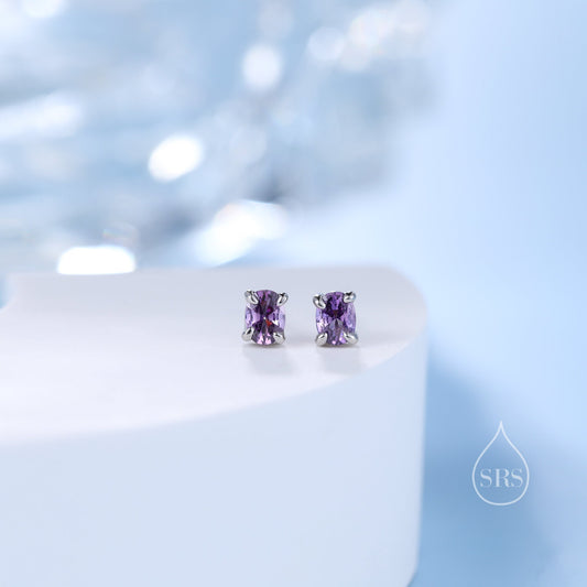 Very Tiny Amethyst Purple Oval CZ Stud Earrings in Sterling Silver, Silver or Gold, Oval Cut Crystal Earrings, February Birthstone